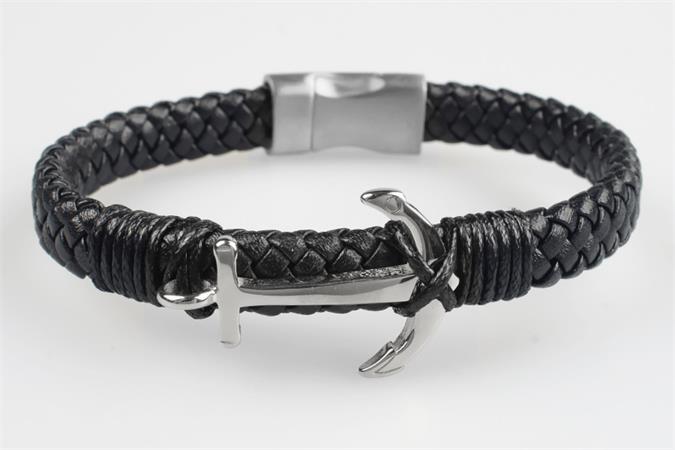 Karkötő, fekete fonott bőr, mágneszárral, ezüst színű horgonnyal, 22,5cm, ART CRYSTELLA®