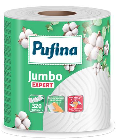 Háztartási papírtörlő, 2 rétegű, 320 lap, 1 tekercses, PUFINA Expert