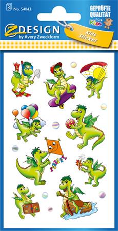 Matrica, papír,  3 ív, 76x120 mm,  AVERY ZWECKFORM, Z-Design No.54043, sárkányok