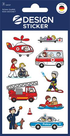 Matrica, papír,  3 ív, 76x120 mm, AVERY ZWECKFORM, Z-Design No.54137, mentősök, rendőrök, tűzoltók
