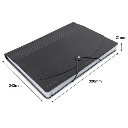 Az ECO GRS Recycled A4 harmonika mappa praktikus és környezetbarát megoldás dokumentumok rendszerezésére, nagy kapacitással és biztonságos záródással.