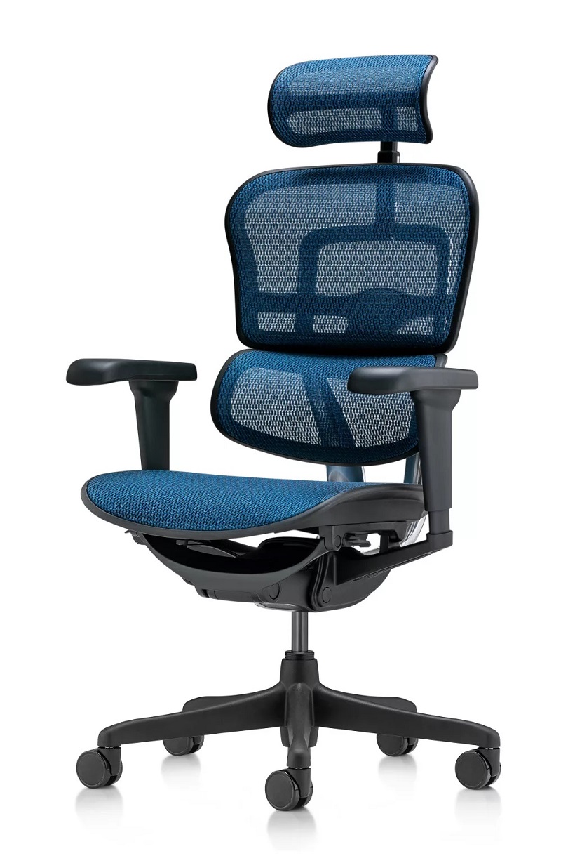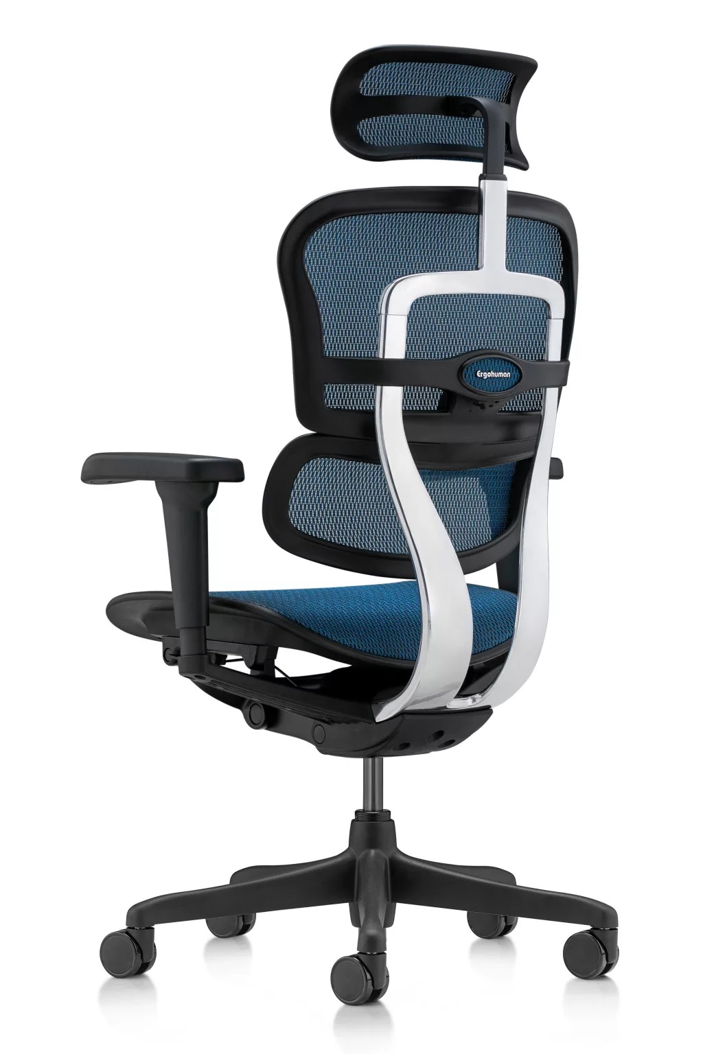 ERGOHUMAN ULTRA II VEZETŐI FORGÓSZÉK | HÁLÓS HÁTTÁMLA ÉS ÜLŐLAP | FEJTÁMLA | ALUMÍNIUM LÁBKERESZT | FEKETE VÁZ, KÉK HÁLÓ