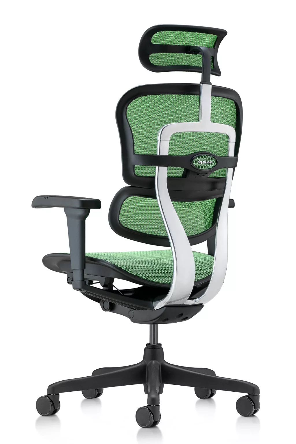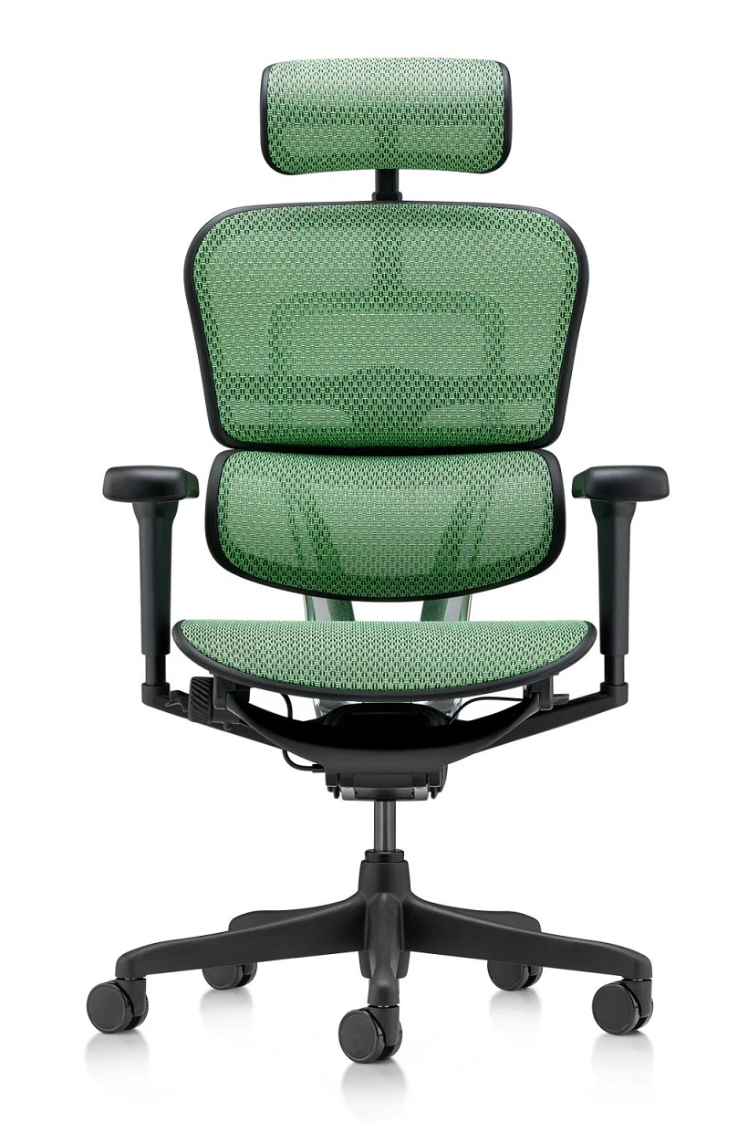 ERGOHUMAN ULTRA II VEZETŐI FORGÓSZÉK | HÁLÓS HÁTTÁMLA ÉS ÜLŐLAP | FEJTÁMLA | ALUMÍNIUM LÁBKERESZT | FEKETE VÁZ, ZÖLD HÁLÓ