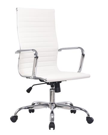 Különleges formatervezéssel készült, magas háttámlájú, textilbőr kárpitozású vezetői forgószék.