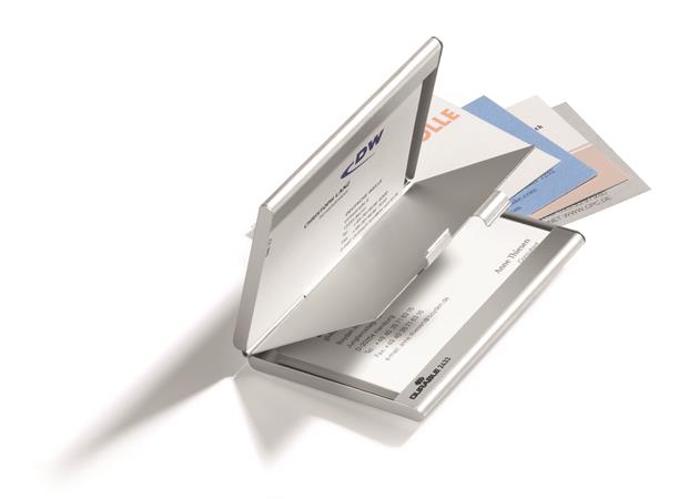 Elegáns, alumínium névjegykártyatartó, matt ezüst felülettel.