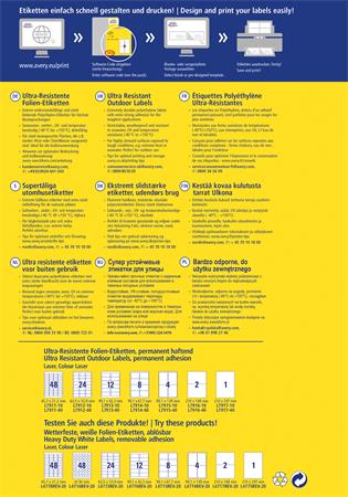 Strapabíró, fehér fólia címkék erős és tartós tapadással.