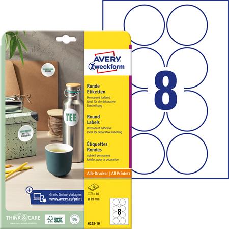 Etikett, univerzális, 69 mm, kör, AVERY ZWECKFORM, 80 etikett/csomag