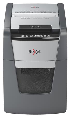 Rexel Optimum AutoFeed+ 100M automata iratmegsemmisítő | 2x15 mm mikrokonfetti | 100 lap | 34l kosár