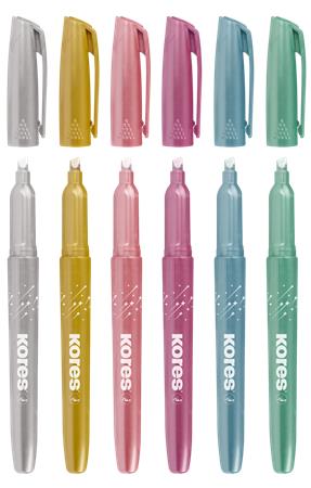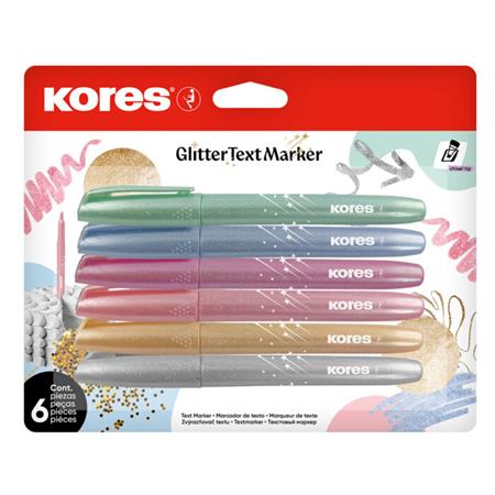A Kores csillámos szövegkiemelő készlet látványos és praktikus megoldás jegyzeteléshez és kreatív projektekhez.