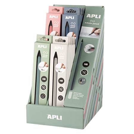 Töltőceruza display, HB, hatszögletű, csereheggyel, APLI "Infinite", vegyes színek