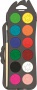 kiváló minőségű vízfesték különböző mennyiségű víz hozzáadásával többféle hatás érhető el a doboz 12 féle színt és egy ecsetet tartalmaz korongok átmérője: 30 mm praktikus méretű, bliszteres kiszerelése miatt könnyen tárolható