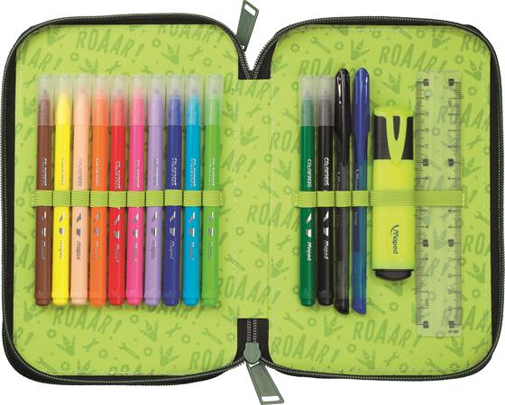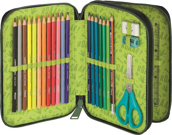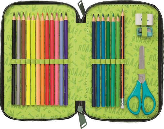 Praktikus töltött tolltartó divatos mintával, amely minden szükséges írószert tartalmaz a tanórákhoz. Két emeletes kialakításának köszönhetően a ceruzák, radírok, ollók és egyéb eszközök átláthatóan rendszerezhetők benne.