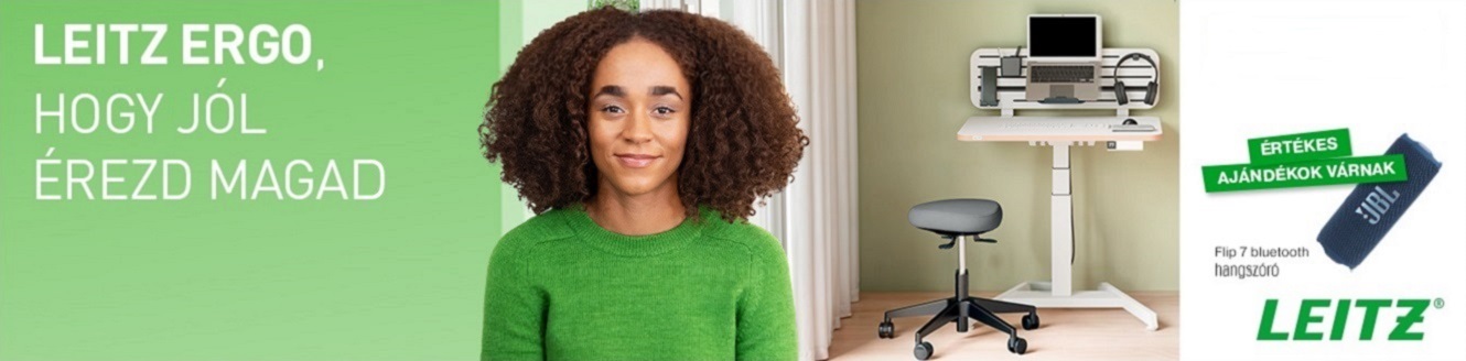 Ajándék Leitz Ergo Active dinamikus ülőpárna szövethuzattal     Ajándék Leitz Ergo Active billenő szék komfort ülőfelülettel          Ajándék JBL Flip 7 bluetooth hangszóró