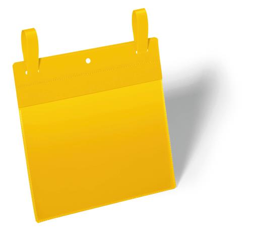 Logisztikai zseb rácsos konténerekhez, nyíl formájú szalag rögzítéssel.
