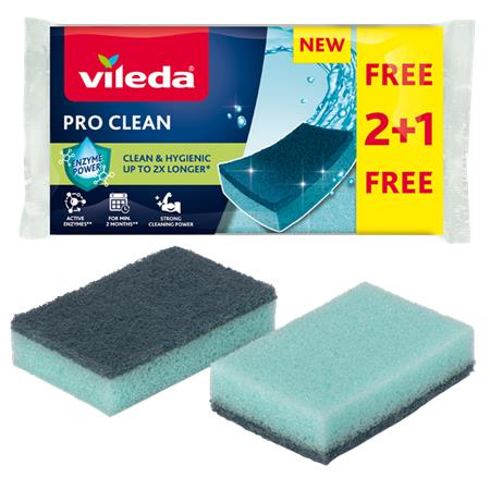 Mosogatószivacs, 2+1 db, VILEDA Pro Clean, kék