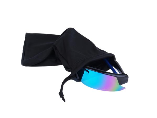 Sportnapszemüveg füstszínű polarizált lencsével, fekete műanyag kerettel, színátmenetes lencsebevonattal.