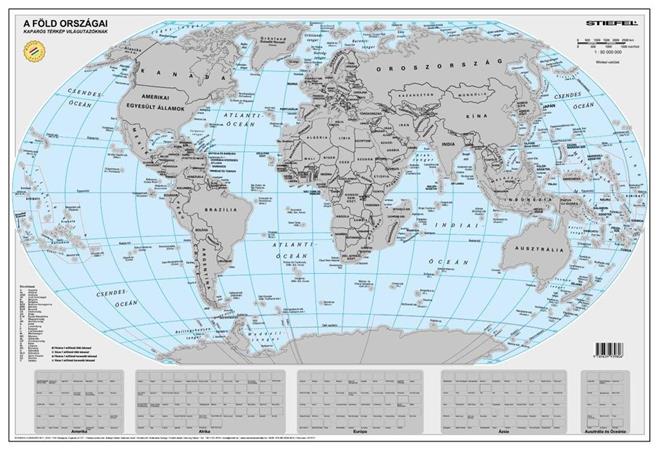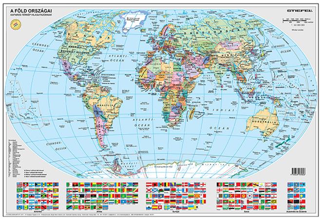 Kaparós Világtérkép, 84x57 cm, STIEFEL, A Föld országai, arany bevonat