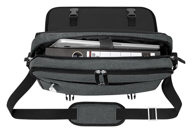 az elülső zseb rendelkezik kábelelvezetéssel, alkalmas okostelefonok, kártyák, tollak, stb. tárolására