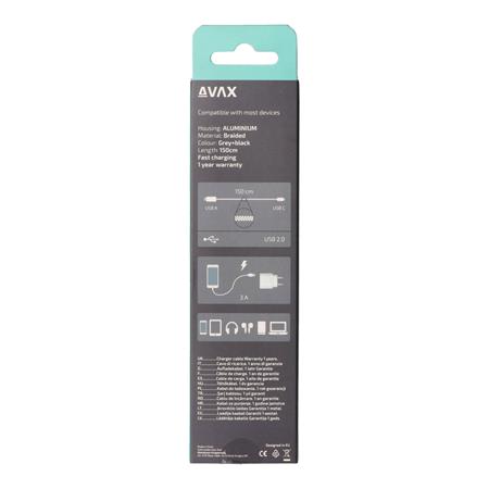 -az AVAX Steely USB-C töltőkábel USB-A és USB-C csatlakozókkal van felszerelve